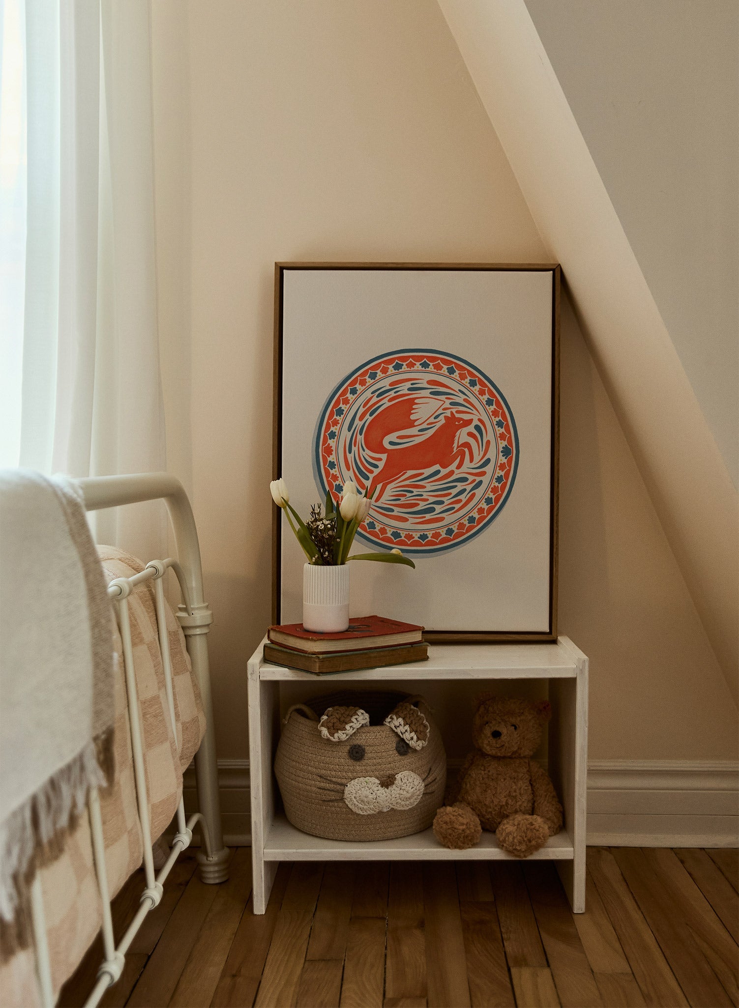 Perfect for a cozy kitchen or dining area, this print pairs beautifully with rustic wooden accents and vintage-inspired decor. It can also add a touch of charm to a gallery wall, complementing other folk art pieces or eclectic collections. Consider placing it in a reading nook or a child's room to inspire storytelling and imagination, creating a welcoming and artistic atmosphere.